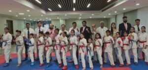 मुजफ्फरनगर (रिपोर्टर)। वर्धमान हॉस्पिटल मुज़फ्फ़रनगर में इंटरनेशनल कराटे एकेडमी ऑफ़ इंडिया के डायरेक्टर शिहान वेदप्रकाश शर्मा एवं चीफ़ इंस्ट्रक्टर सेंसाई अभिषेक शर्मा के कुशल नेतृत्व में वी.वी क्लासिक कुमीते (फाइट) कराटे चैंपियनशिप का भव्य आयोजन किया गया जिसमें विश्व प्रसिद्ध डॉ मुकेश जैन का विशेष सहयोग रहा इस विशाल आयोजन में मुख्य अतिथि पूर्व पालिका चेयरमैन श्री पंकज अग्रवाल एमडी बिंदल डुप्लेक्स लिमिटेड पधारे।वहीं संजीव सिंघल, मनीष जैन, डॉ एमके तोमर ने वरिष्ठ अतिथि की भूमिका निभाई। कार्यक्रम में वीना शर्मा एवं अवनी शर्मा ने सफल प्रदर्शन वाली सैकड़ों बालिकाओं को सम्मानित किया। इस कुमीते चैंपियनशिप में आर्यपुरी स्थित आई.एस.काई कराटे अकेडमी, गांधी कॉलोनी वाटिका न्यू मंडी, द्वारिका सिटी शाखाओं के 200 से अधिक कराटे खिलाड़ियों ने भाग लेकर बहुत सुन्दर शानदार व दमदार फाइट प्रदर्शन करते हुए स्वर्ण,रजत,एवं कांस्य पदक जीते।