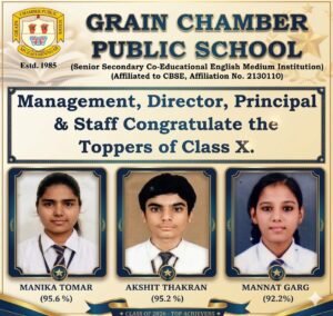 मुजफ्फरनगर (रिपोर्टर)। स्थानीय ग्रेन चैम्बर पब्लिक स्कूल नई मंडी में बुधवार को सीबीएसई बोर्ड के वर्ष 2026 के कक्षा 10 के घोषित प्रथम बोर्ड के परीक्षा – परिणामों में विद्यालय के छात्र-छात्राओं ने स्वर्णिम सफलता प्राप्त की है। इस दौरान सभी बच्चों ने अच्छे अंकों से परीक्षा उत्तीर्ण की।