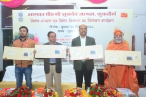 मुजफ्फरनगर। भारतीय डाक विभाग द्वारा भागवत पीठ श्री शुकदेव आश्रम, शुकतीर्थ पर विशेष आवरण एवं विरूपण का विमोचन पीठाधीश्वर स्वामी ओमानन्द व डीएम उमेश मिश्रा ने संयुक्त रूप से किया। इस दौरान डीएम उमेश मिश्रा ने कहा कि भागवत भूमि शुकतीर्थ की धरोहर विश्व की मार्ग दर्शक बनेगी। डाक विभाग का प्रयास सनातन संस्कृति संरक्षण, संवर्धन और गौरव की दिशा में सार्थक बनेगा।