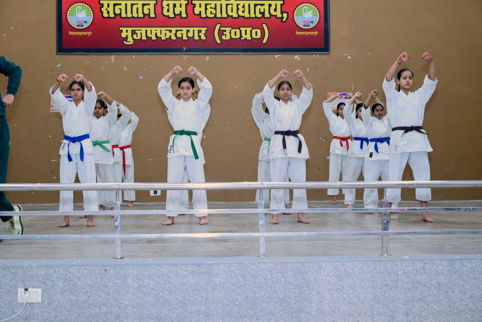 मुजफ्फरनगर। एसडी कॉलेज के मिशन शक्ति समिति-एनसीसी के संयुक्त तत्वावधान में आत्मरक्षा कौशल विकास कार्यशाला का गुरूवार को आयोजन किया गया। इस कार्यक्रम के मुख्य अतिथि शिहान वेदप्रकाश शर्मा, सैन्सार्इं अभिषेक शर्मा रहे। कार्यक्रम का शुभारंभ प्राचार्य प्रोफेसर सुधीर कुमार पुंडीर व अतिथियों ने मां सरस्वती के समक्ष द्वीप प्रज्ज्वलित करते हुए किया। कार्यक्रम संचालन समिति समन्वयक डॉ. प्रतिभा चौधरी ने किया। इस कार्यशाला में चीफ इंस्ट्रक्टर सैन्सार्इं अभिषेक शर्मा व उनके प्रशिक्षुओं ने बच्चों को आत्मरक्षा की खातिर कराटे के नियम सिखाए एवं उनका प्रदर्शन किया। इसके बाद छात्र-छात्राओं ने इन नियमों का अभ्यास किया।