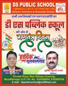 मुजफ्फरनगर। डीएस पब्लिक स्कूल में देश का 76वां गणतंत्र दिवस बड़े धूमधाम से मनाया। इस बीच विद्यार्थियों ने देश के शहीदों को नमन करते हुए देशभक्ति पूर्ण कार्यक्रम के साथ कविता, गीत, भाषण तथा नृत्य से वीर शहीदों की जय जयकार करते हुए देश के प्रति अपने प्यार तथा समर्पण का प्रदर्शन किया। एजुकेशन डायरेक्टर संतोष जैन, प्रधानाचार्य गगन शर्मा ने संयुक्त रूप से देश की आन बान शान के प्रतीक राष्ट्रीय ध्वज तिरंगे को फहरा कर शहीदों को नमन किया।