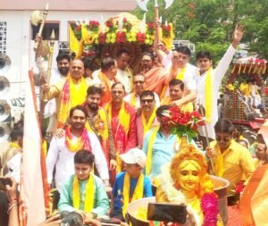 सनातन धर्म सभा भवन में संपन्न हवन एवं प्रसाद वितरण के बाद टाउनहाल से भगवान श्री परशुराम की भव्य शोभायात्रा प्रारम्भ हुई। तेज धूप और गर्मी के बावजूद भव्य शोभायात्रा में श्रद्धालुओं का जोश और उत्साह देखने योग्य था। इस शोभायात्रा में भगवान परशुराम की झांकी, भजन मंडलियों और सांस्कृतिक कार्यक्रमों ने पूरे नगर को भक्तिमय बना दिया। शोभा यात्रा में शामिल दर्जनों बैंड धार्मिक धुनों से नगर को श्रद्धामय बना रहे थे। शोभा यात्रा टाउनहाल प्रांगण से शुरू होकर मालवीय चौक, अंसारी रोड, नावल्टी चौक, आबकारी रोड, हनुमान चौक, भगत सिंह रोड, शिवचौक, झांसी रानी और सदर बाजार होते हुए टाउनहाल पर विराम लिया। शोभा यात्रा का अनेक स्थानों पर फूल बरसाकर जोरदार स्वागत किया गया। इस दौरान स्वामी श्रीभगवान आश्रम महाराज, जिला पंचायत अध्यक्ष वीरपाल निर्वाल, चेयरपर्सन मीनाक्षी स्वरूप, गौरव स्वरूप, पूर्व चेयरमैन डॉ. सुभाष शर्मा, पूर्व जिलाध्यक्ष विजय शुक्ला, समिति अध्यक्ष संजय मिश्रा, ब्रह्म प्रकाश शर्मा, मुजफ्फरनगर बुलेटिन के संपादक अंकुर दुआ, विनोद पाराशर, भाजपा नेता अरविन्द राज शर्मा, सुधाराज शर्मा, प्रदीप शर्मा, सपा नेता राकेश शर्मा, सुरेन्द्र शर्मा टोप, अरुण मिश्रा, योगेश शर्मा, केके शर्मा, ऋषभदेव शर्मा, रवि शर्मा, हरेन्द्र शर्मा, पंकज शर्मा, हिमांशु शर्मा, अजय शर्मा, सभासद देवेश कौशिक, रजत धीमान, कमल कांत शर्मा, नितिन शर्मा, गोपाल शर्मा, अमित वत्स, बिजेंद्र पाल, डॉ. संदीप शर्मा, सतीश शर्मा, रमेश ठाकुर, उमादत्त शर्मा, सुबोध शर्मा, जयकुमार शर्मा, पूनम शर्मा, पूजा शर्मा, ब्रजेश दीक्षित, पुनीत वशिष्ठ, अलका शर्मा, अंजू शर्मा, नीलम शर्मा, रवि शर्मा, रमन शर्मा, सरनदीप कौशिक, कन्हैया शर्मा, चन्द्रमणि शर्मा, सुशील शर्मा, रोहित शर्मा, अमित शर्मा, सचिन शर्मा, शिवदत्त शर्मा, आदेश गौतम, अजय शर्मा, अभिन्नदन शर्मा, विशाल शर्मा, शरद शर्मा, रजनीश शर्मा, संजीव शर्मा, नीरज शर्मा, संजय शर्मा, मनोज कपिल, अविनाश भारद्वाज, अभिनव मुदगल, हरीश गौतम, बाल किशन शर्मा, नरेश शर्मा, अरुण शर्मा, अश्वनी शर्मा आदि मौजूद रहे।