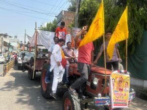 मुजफ्फरनगर। भगवान श्री परशुराम के जन्मोत्सव पर रविवार को नगर में भव्य शोभायात्रा निकाली गई। नगर के मुख्य मार्गों से होकर निकली इस शोभायात्रा में छोटे बच्चों एवं युवाओं के साथ बुजुर्गो और महिलाओं ने पूर्ण जोश और उत्साह के साथ प्रतिभाग किया। शोभा यात्रा में अनेक प्रसिद्ध बैंड और डीजे आदि इस दौरान धार्मिक धुनें बजाकर माहौल को श्रद्धामय बनाए रखा। तेज धूप और भीषण गर्मी के बावजूद सड़कों पर उतरी युवाओं की टोली जय परशुराम के जयघोष के साथ गंतव्य की ओर बढ़ती रही। कड़ी धूप भी शोभायात्रा में शामिल श्रद्धालुओं के उत्साह को कम करने में पूरी तरह विफल साबित हुई। शोभा यात्रा का कई स्थानों पर भक्तों ने पुष्प बरसाकर जोरदार स्वागत किया। शोभायात्रा मार्ग में सुरक्षा व्यवस्था की दृष्टि से भारी पुलिस बल मौजूद रहा।