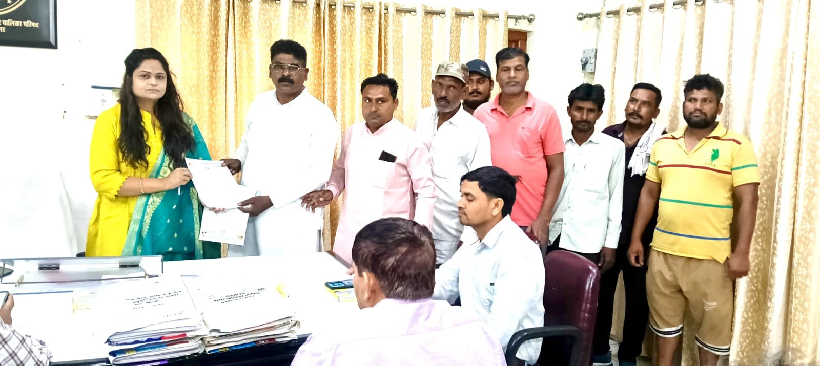सोमवार को सफाई कर्मचारी महासंघ के जिलाध्यक्ष चमन लाल ढिंगान के नेतृत्व में सफाई कर्मी एवं वाल्मीकि समाज के दर्जनों लोग पालिका में ईओ कार्यालय पर पहुंचे और अपनी लंबित मांगों के समर्थन में प्रदर्शन करते हुए आरोप लगाया कि नगर पालिका प्रशासन कर्मचारियों के हितों को लेकर संवेदनशील नहीं है। चमन लाल द्वारा ईओ को सौंपे ज्ञापन में कहा गया कि पूर्व में उनके संगठन की ओर से ही सफाई कर्मचारियों के हितों को लेकर पूर्व में 17 सूत्रीय मांग पत्र सौंपा गया था। इसके बाद एडीएम प्रशासन को भी एक मांग पत्र दिया गया। इस पर नगर स्वास्थ्य अधिकारी डॉ. अतुल कुमार द्वारा भेजे जवाब से महासंघ संतुष्ट नहीं है। इसके लिए 26 मई को पुन: पत्र दिया गया। महासंघ ने चेतावनी दी है कि यदि 9 जून तक सभी 17 मांगों को लेकर पालिका प्रशासन वार्ता नहीं करता तो इसके बाद विवश होकर महासंघ पालिका में सफाई कर्मचारियों की कामबंद हड़ताल और प्रदर्शन आदि निर्णय लेने के लिए बाध्य होगा। इस दौरान सागर वाल्मीकि, देवी प्रसाद, सूरज कुमार, प्रवीण मचल, पाले राम, बिल्लू, नंद किशोर, सफाई नायक दीपक, दिल नवाज, काजल सौदाई, राकेश ढिंगान, रजनीश, वेदू भगत, दीपक झा, कुमार गौरव, रमेश वेद, राहुल कुमार, राजेन्द्र कुमार आदि मौजूद रहे।