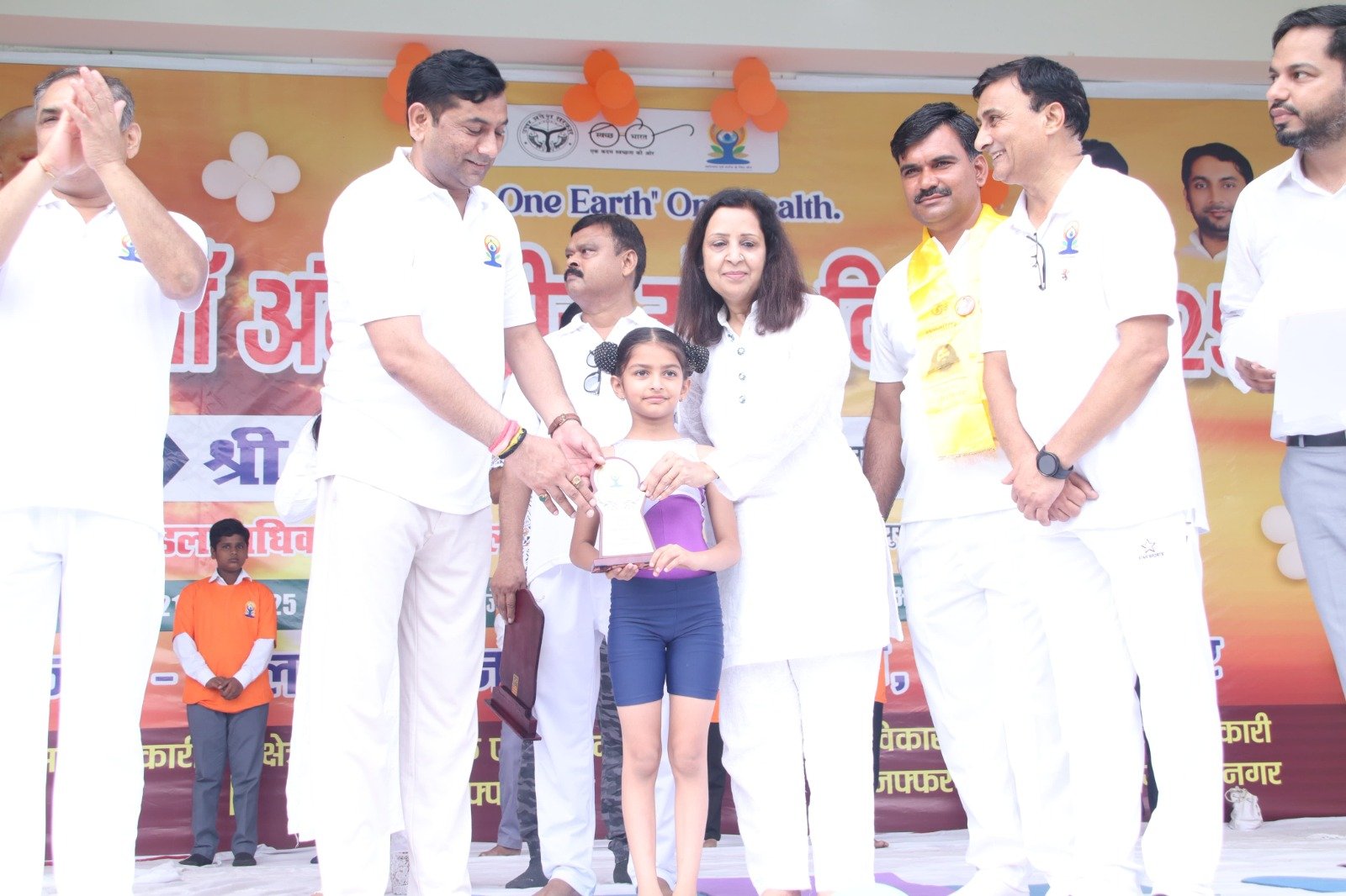मुजफ्फरनगर। आर्य समाज रोड पर स्थित डीएवी कॉलेज में शनिवार को 11वां अंतर्राष्ट्रीय योग दिवस आयुष विभाग व जिला प्रशासन की ओर से संयुक्त रूप से आयोजित किया गया, जिसमें मुख्य अतिथि के रूप में जिले के प्रभारी मंत्री डॉ. सोमेंद्र तोमर, विशिष्ट अतिथि जिला पंचायत अध्यक्ष वीरपाल निर्वाल, मंडलायुक्त अटल कुमार राय, सीडीओ कंडारकर कमल किशोर देशभूषण ने संयुक्त रूप से दीप प्रज्ज्वलित करते हुए इस कार्यक्रम का शुभारम्भ किया।