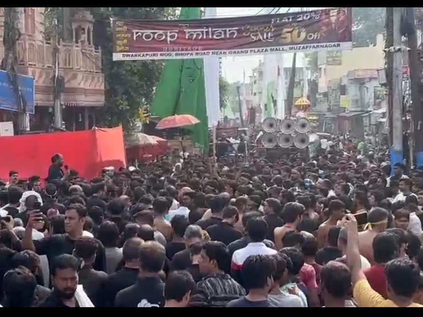 मुजफ्फरनगर। रविवार में देशभर के साथ जनपद मुख्यालय एवं गांव देहात में गमगीन माहौल में पैगम्बर-ए-इस्लाम हजरत मुहम्मद सल. के नवासे हजरत इमाम हुसैन अलै. और उनके 72 जांनिसार साथियों की लश्करे यजीद द्वारा कर्बला में हुई शहादत के गम के बीच में यौमे आशूरा के दिन मोहर्रम का पर्व मनाया गया। इस कड़ी में रविवार को दसवीं मोहर्रम पर शिया सोगवारों ने ताजियादारी के साथ मातमी जुलूस निकाले और नम आंखों के साथ हजरत इमाम हुसैन की अपने नाना के दीन और इंसानियत को बचाने के लिए दी गई कुर्बानी के साथ शहीद-ए-कर्बला पर हुई जुल्म और ज्यादती को याद करते हुए जमकर आंसू बहाए। इस दौरान जुलूस में भारी संख्या में पुलिस बल मौजूद रहा।
