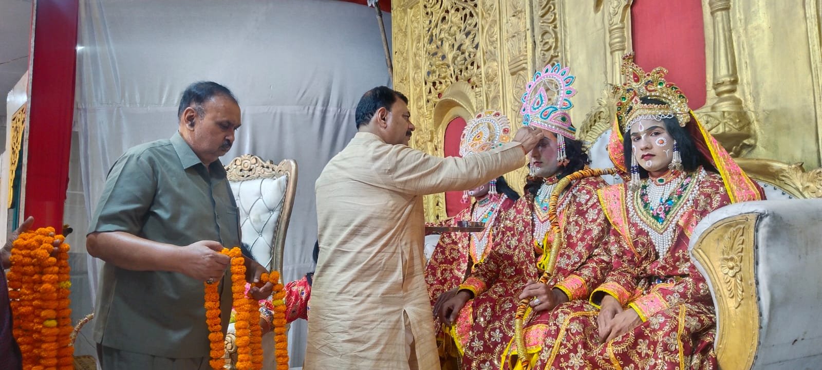 मुजफ्फरनगर। नई मंडी श्री रामलीला भवन में हो रहे 99वें श्री रामलीला महोत्सव का समापन प्रभु श्री राम के राज्याभिषेक के साथ संपन्न हुआ, जिसमें प्रभु श्री राम द्वारा लंका पर विजय पाकर 14 वर्ष वनवास के बाद जब अयोध्या लौटे, तो पूरी अयोध्या में खुशियां मनाई गई। इस बीच मुनि वशिष्ठ ने अयोध्या के सिंहासन पर प्रभु श्रीराम को विराजमान होने के लिए कहा। मुनि वशिष्ठ के कहने पर प्रभु श्रीराम अयोध्या सिंहासन पर विराजमान हुए तथा प्रथम राजतिलक मुनि वशिष्ठ द्वारा किया गया। इस दौरान पंडाल जय श्रीराम के जयघोष से गूंज उठा।