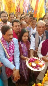 नई मंडी क्षेत्र के भरतिया कॉलोनी स्थित श्री गणपति धाम खाटू श्याम मंदिर समिति द्वारा 24 फरवरी से मनाये जा रहे फाल्गुन महोत्सव के उपलक्ष्य में बाबा खाटू श्याम की भव्य निशान पदयात्रा का शुभारंभ शुक्रवार को शिव चौक से आस्था के उत्साह के साथ हुआ। पूजा-अर्चना और मंत्रोच्चारण के बीच जनप्रतिनिधियों ने संयुक्त रूप से यात्रा को रवाना किया। निशान यात्रा का शुभारंभ राज्य मंत्री कपिल देव अग्रवाल, नगर पालिका अध्यक्ष मीनाक्षी स्वरूप, भाजपा नेता गौरव स्वरूप और मंदिर समिति अध्यक्ष भीमसेन कंसल द्वारा किया गया। इस दौरान शिव चौक परिसर में बाबा श्याम की आरती और भजन-कीर्तन से वातावरण भक्तिमय हो उठा।